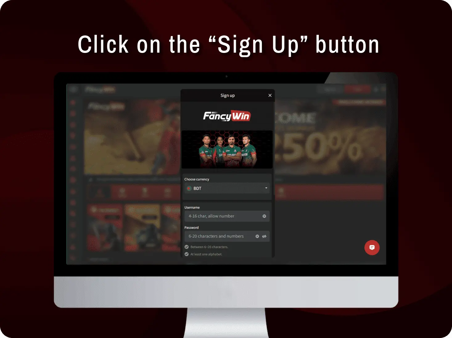 To open an account with FancyWin Bangladesh, users will need to spend no more than 1.5 minutes of their time. To do this, they need to follow a few simple steps: