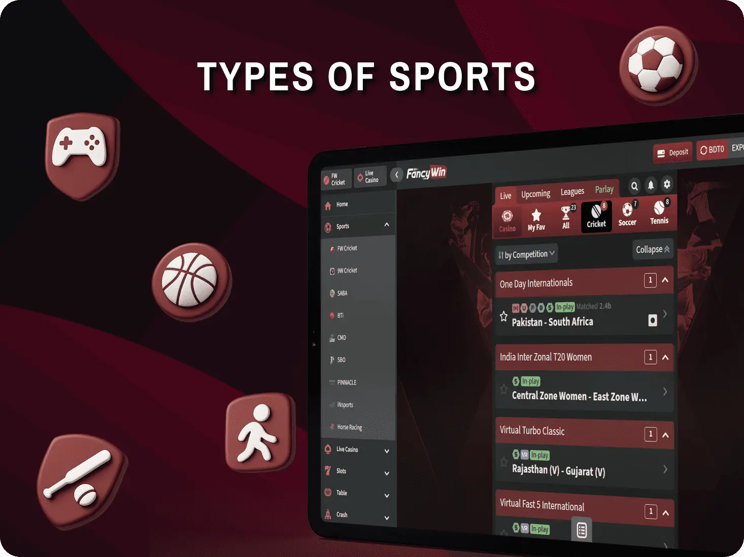 Fancy Win Bet remains one of the best platforms in Bangladesh for sports betting. The bookmaker cooperates with the largest and most reliable sports providers, including 9Wickets, BTi, SBO, CMD, and PINNACLE, which means it offers reasonable odds and fair play. Every day, the site hosts at least 2,000 sporting events, both international and local.